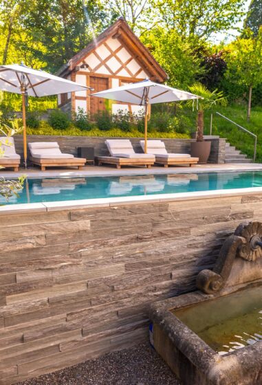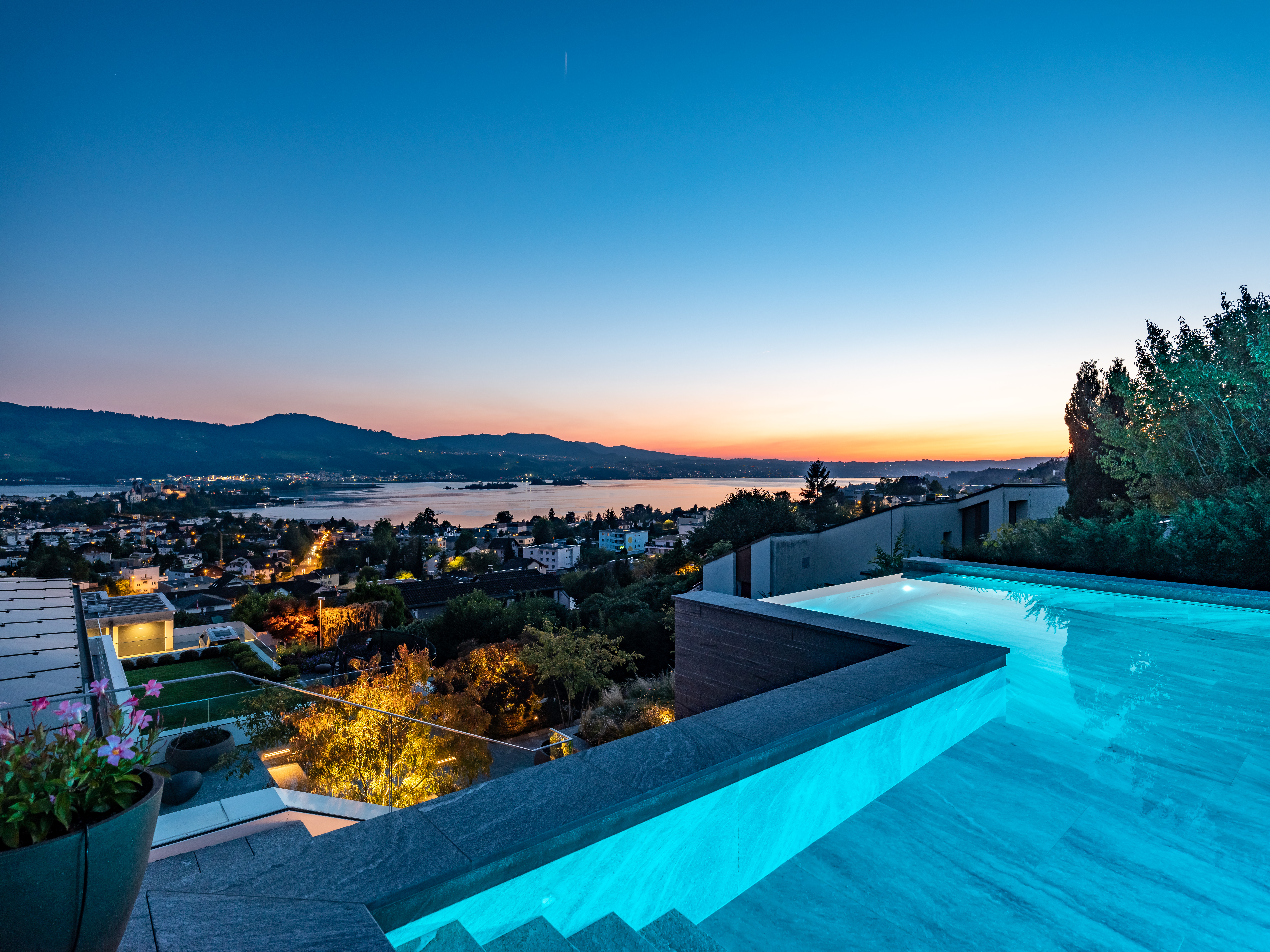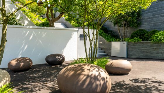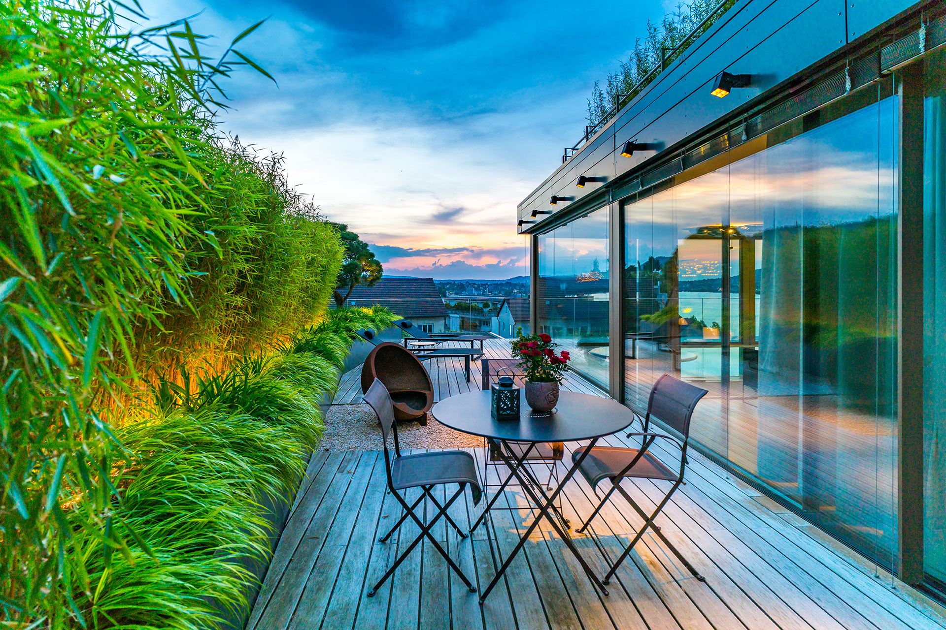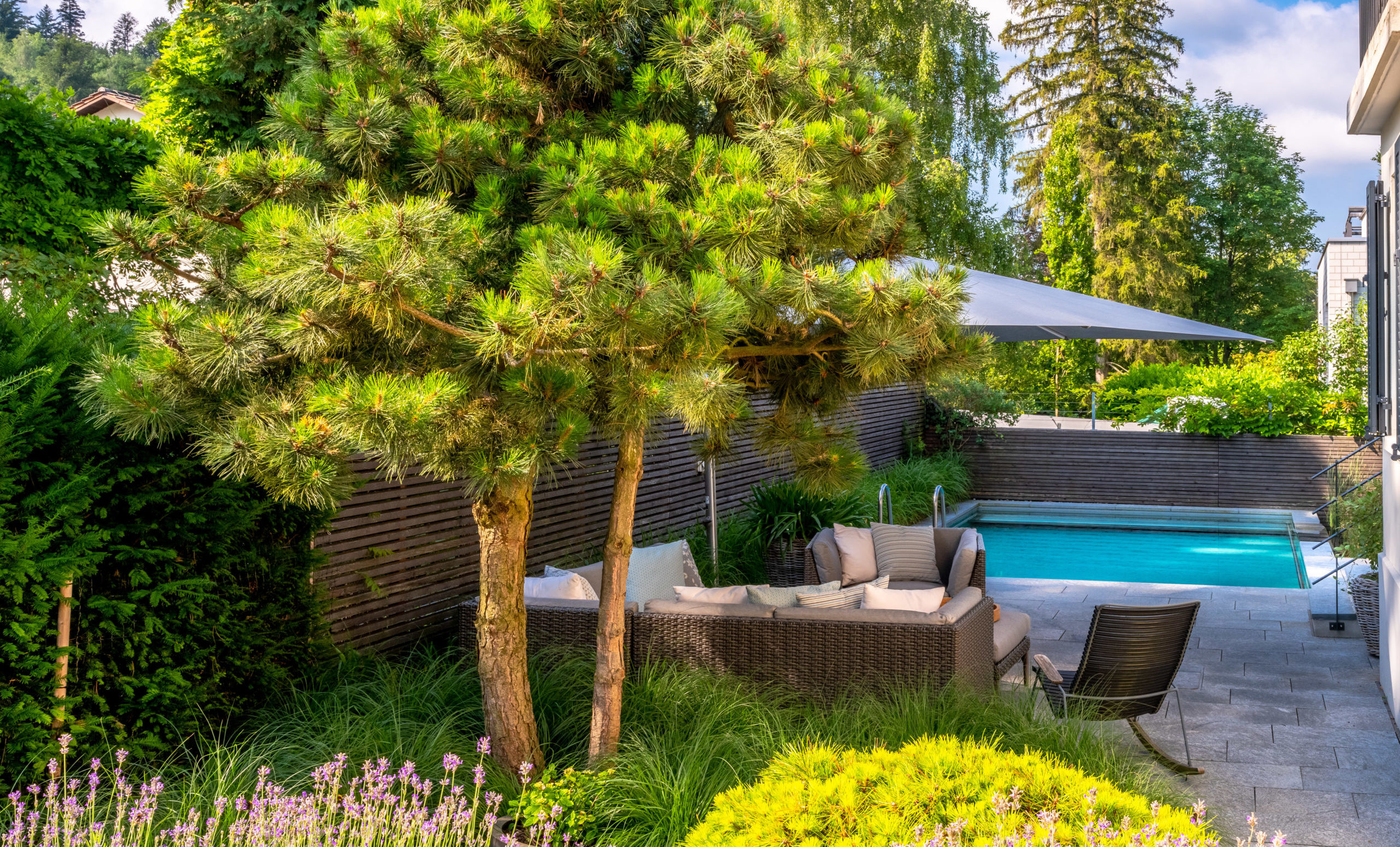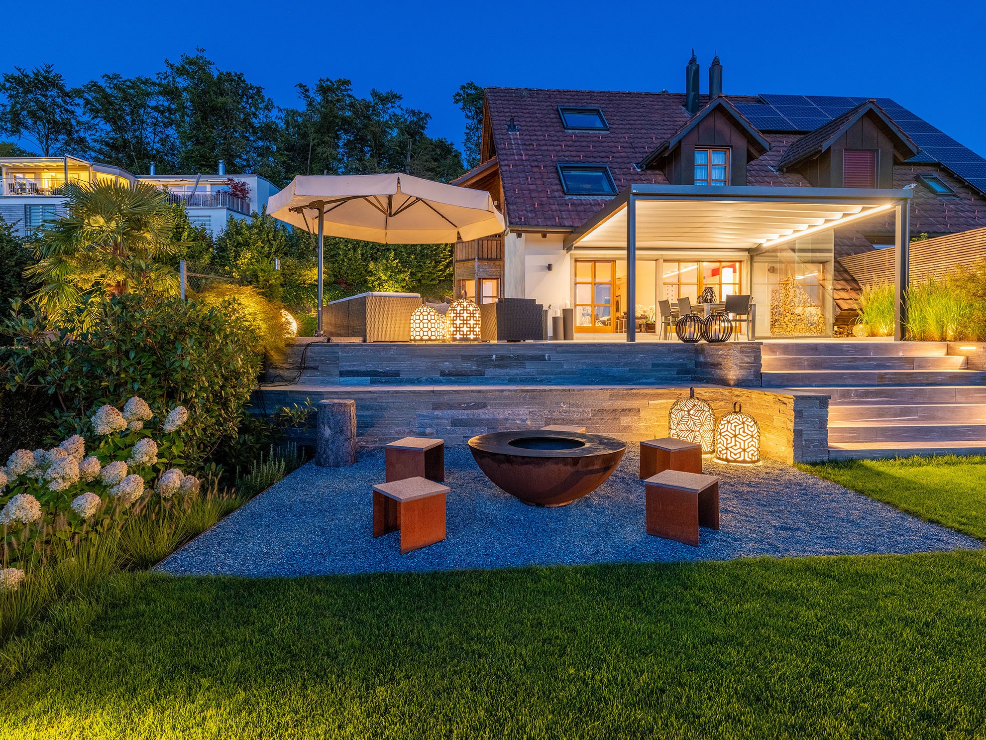 Der neu gestaltete Hanggarten bereichert das Anwesen und wertet es mit einer Outdoor-Welt der Extraklasse auf