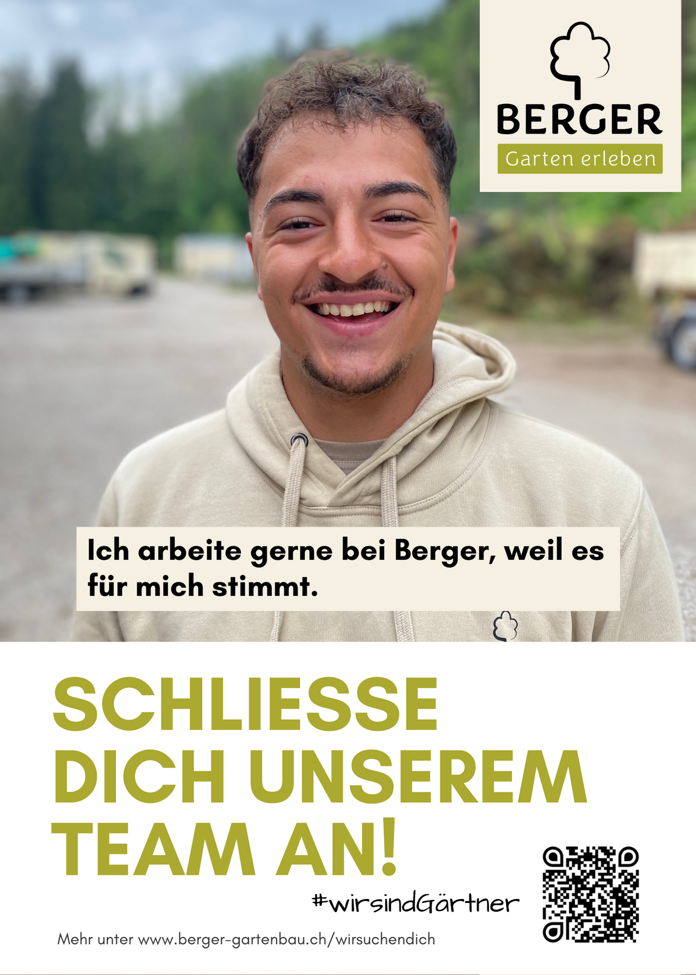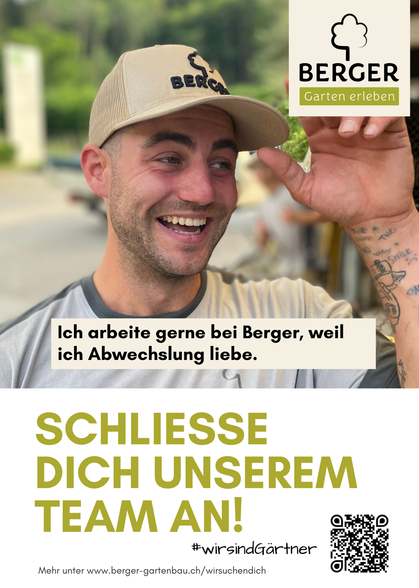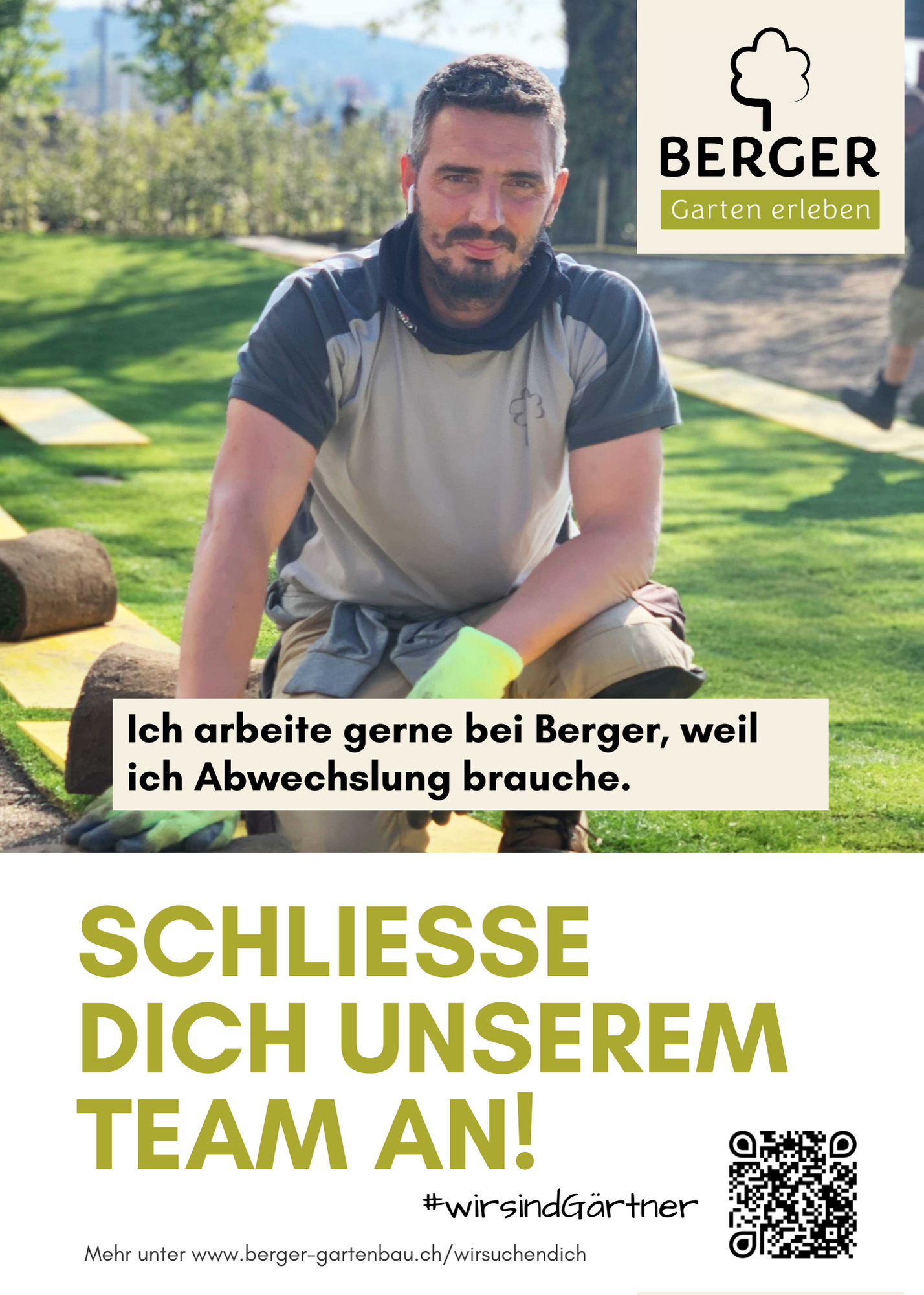 Kennst du jemanden, der als Gärtner oder Gärtnerin arbeitet und mit Freude und Leidenschaft seiner Arbeit nachgeht? Magst du diese Webseite teilen? Jede erfolgreiche Übermittlung (nur bei Vertragsabschluss und überstandener Probezeit), wird mit CHF 500.- bar belohnt. Falls du beim Berger arbeitest, gewinnst du noch mehr.