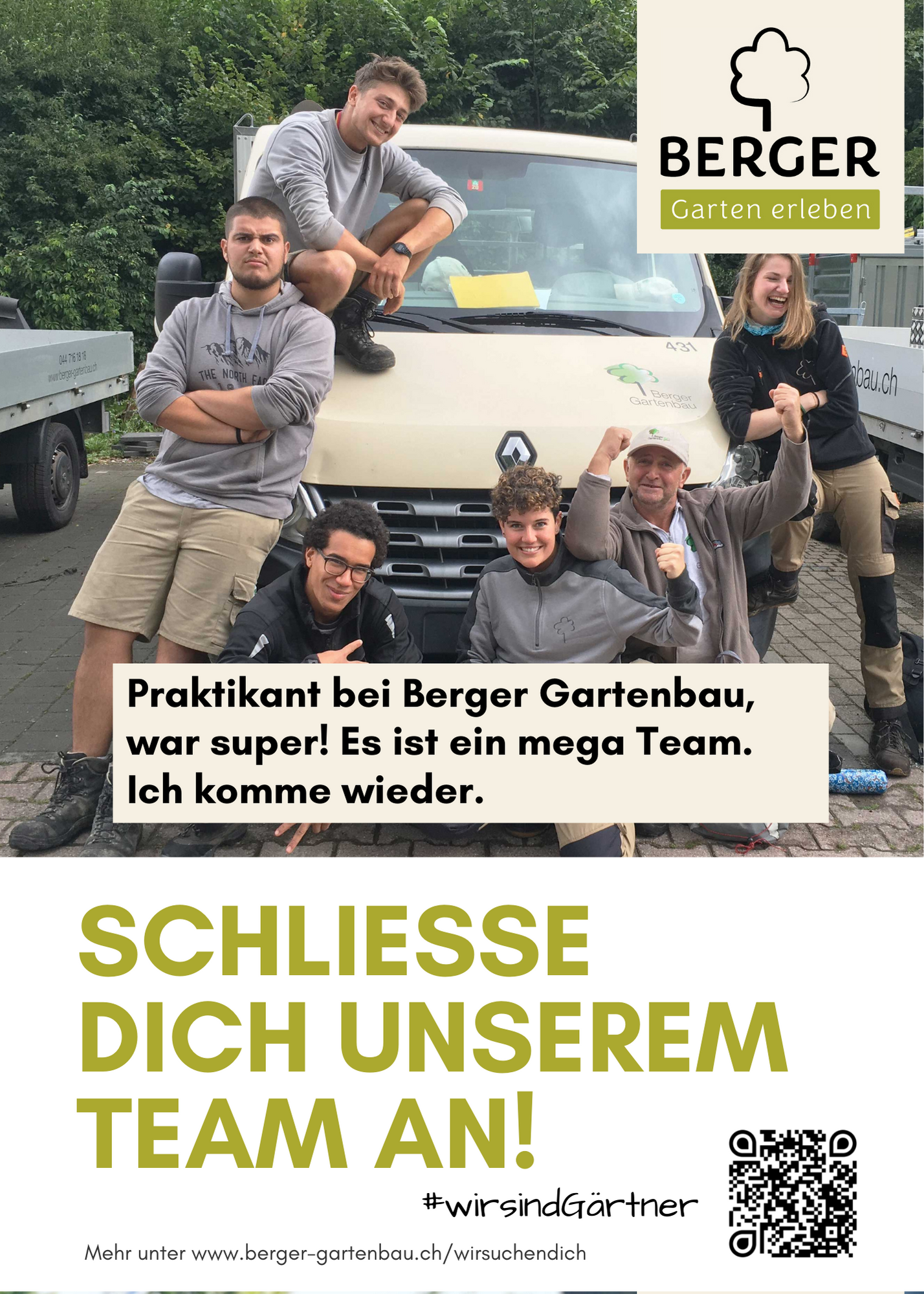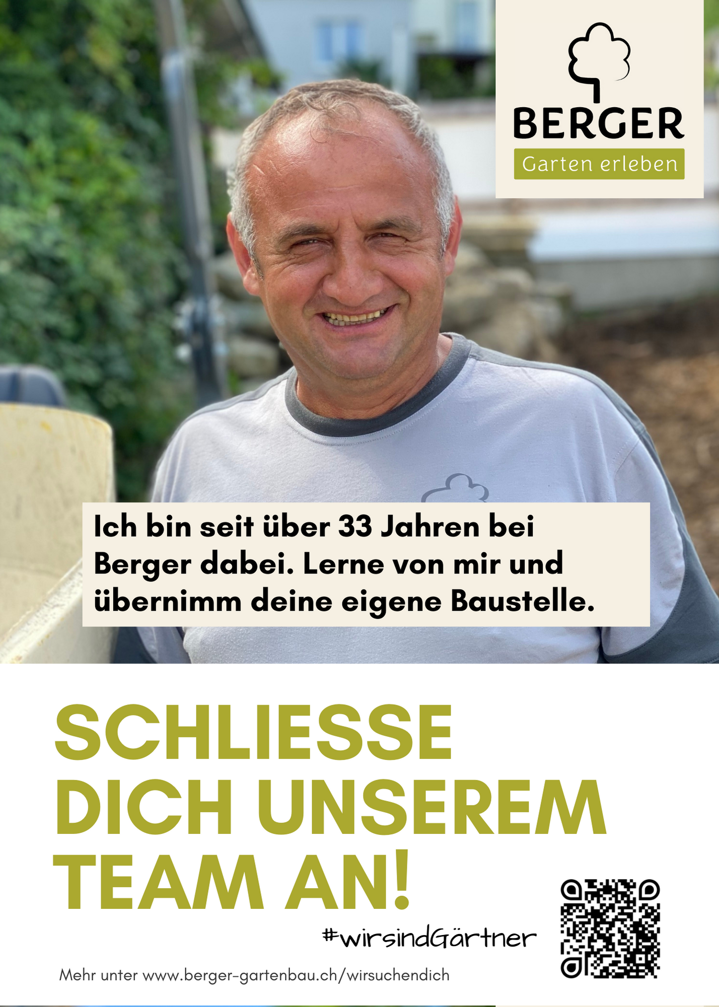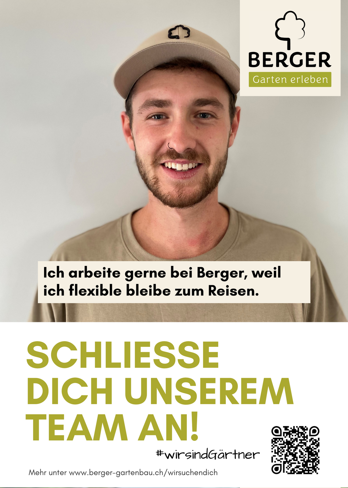 Kennst du jemanden, der als Gärtner oder Gärtnerin arbeitet und mit Freude und Leidenschaft seiner Arbeit nachgeht? Magst du diese Webseite teilen? Jede erfolgreiche Übermittlung (nur bei Vertragsabschluss und überstandener Probezeit), wird mit CHF 500.- bar belohnt. Falls du beim Berger arbeitest, gewinnst du noch mehr.